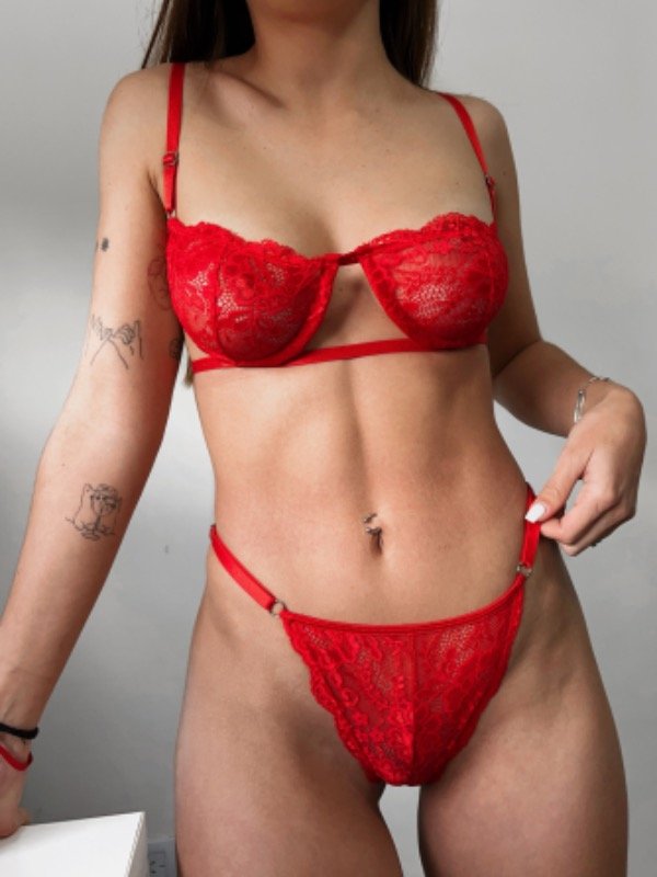 Conjunto de encaje. Corpi con aro se abrocha en espalda y regula en hombros. Less regulable con protección de algodón 🥰