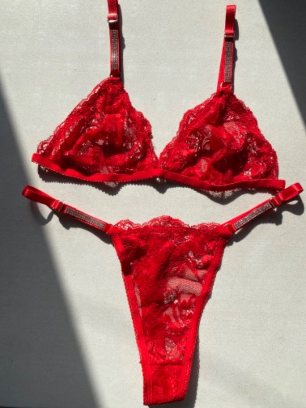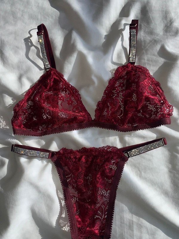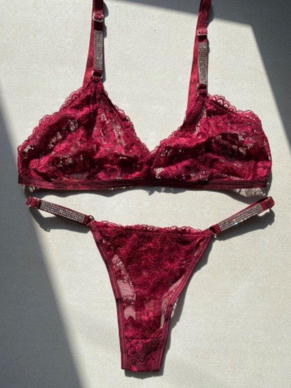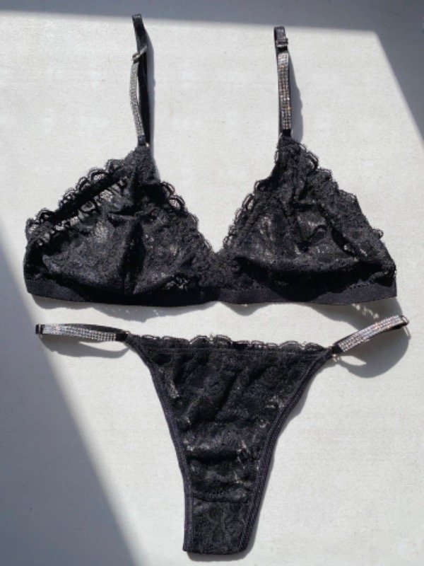 Conjunto de encaje con detalles de strass