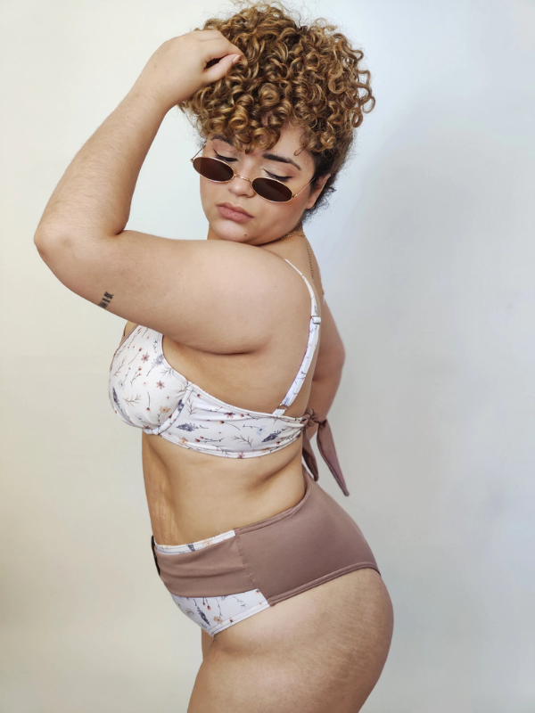 corpiño con aro: lycra vison y estampado premium con frunce en la copa, forrado por dentro, regulable en hombros y espalda para anudar. Metales de zamac (hipoalérgenica)