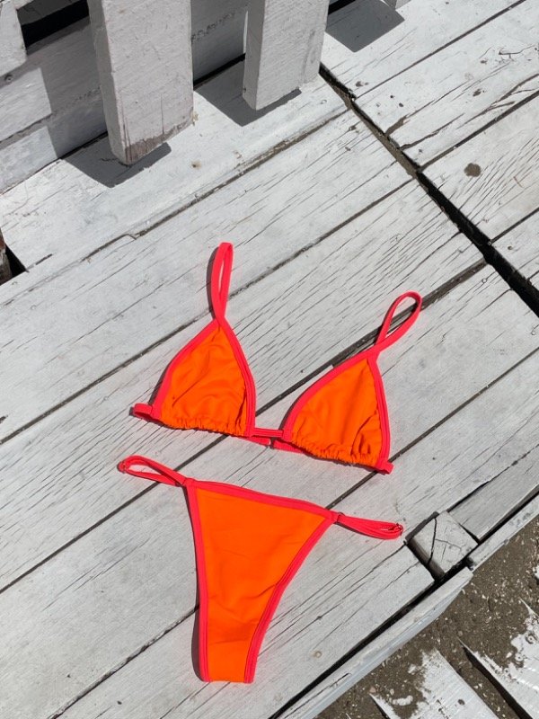 Bikini de lycra combinada, regulable en hombros y less, broche en espalda