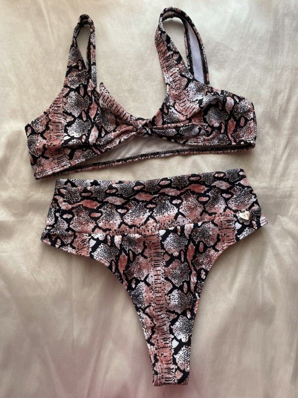 Bikini top entero con tirita para moño (opcional) . Semiless tiro alto