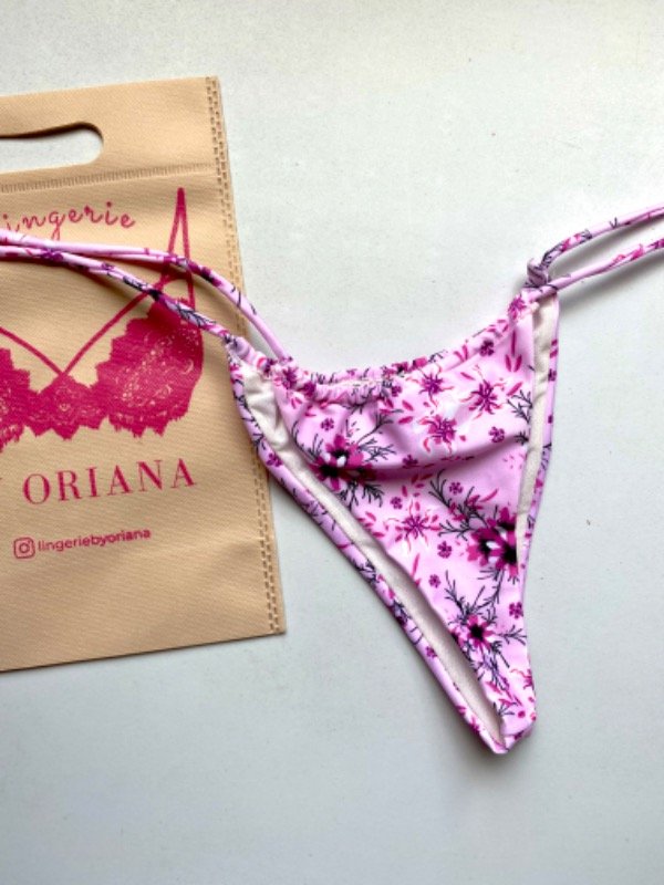 Less estampada de lycra forrada por dentro y detalle de dije de corazon. La podes regular atando sus tiras 🌸